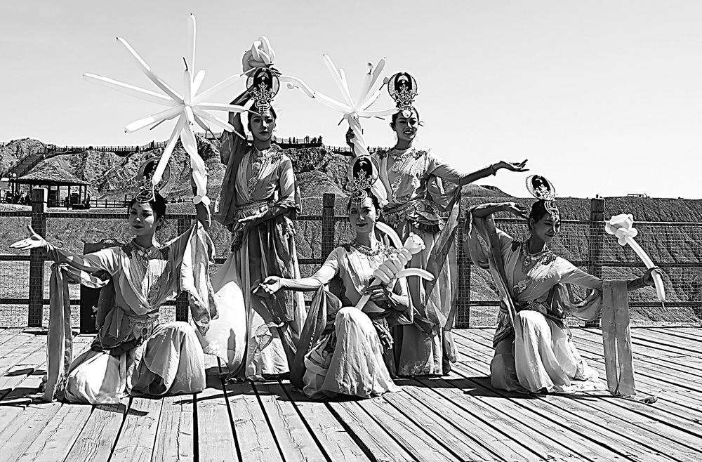 张掖七彩丹霞景区“丹霞映彩耀五一 · 携手并进谱华章”主题文化展演活动吸引众多游客观赏。 本报记者 成 林 摄