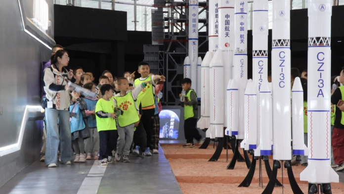 “五一”假期首日,走进金昌“火星1号基地”火星星际探索体验中心内,各体验区域人流如织,穿过炫彩的星空隧道,游客们不仅能看到北斗卫星组网、“东方红一号”卫星、火星车、1:1天宫二号半剖仿真模型等一系列真实还原的航天模型,还可以沉浸式打卡飞行影院、太空行走等体验项目,其中翼装飞行、离心机、三维滚环等真实还原航天员训练场景的模拟项目格外受到游客欢迎。