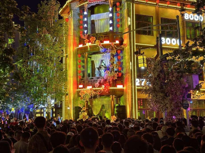 天水古城通过古色古香的街巷、沉浸式的非遗体验及丰富的假日活动,为游客们带来了一场场别开生面的文旅盛宴,成为省内外游客来天水必到的打卡热地。节日期间,天水古城推出文创非遗体验作坊、新潮市集、主题展览、啤酒广场、文艺演出等多种活动,自主打造的“山河美术馆VR体验项目”,以科技赋能文旅,利用VR光影技术与历史叙事结合,生动演绎经典传统文化与天水古城历史,吸引众多游客参与体验。在玉泉巷小吃街与秦州食光美食街,游客不仅能品尝地道西北风味,还能观摩各类美食制作技艺展示,感受烟火气中的城市温度。此外,天水古城还联合各商户开展了集章打卡活动,在快闪期间游客可通过领取古城NPC任务,在各商户进行对暗号、转盘抽奖等互动项目,文旅体验进一步创新升级。