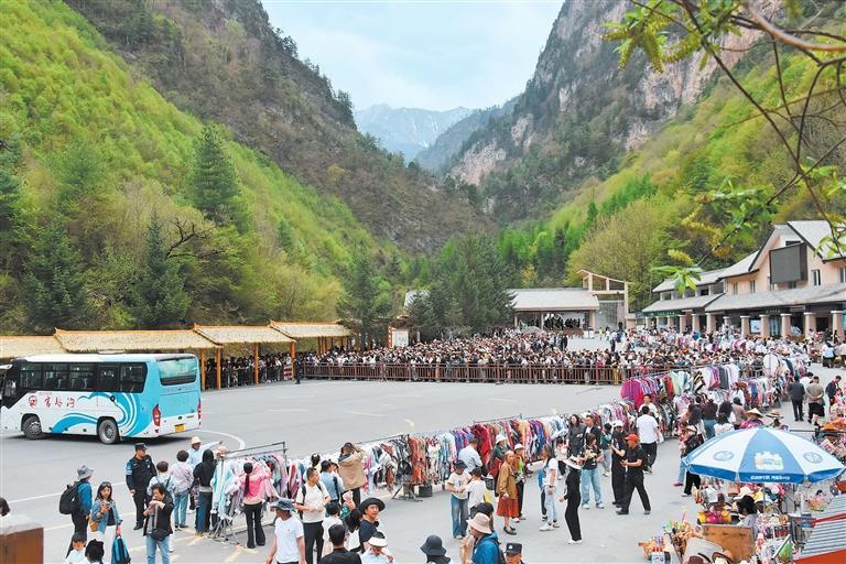 宕昌县官鹅沟景区吸引游客前来赏景游玩。新甘肃·甘肃日报通讯员 刘国庆