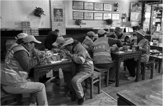 吸溜声填满了面馆,距离400米开外的快上瘾牛肉面馆里,张永霞和工友们排队端面,“挺好的,每天能吃上热乎的牛肉面,牛肉块大、汤浓,吃完身子暖,干活也有力气。”