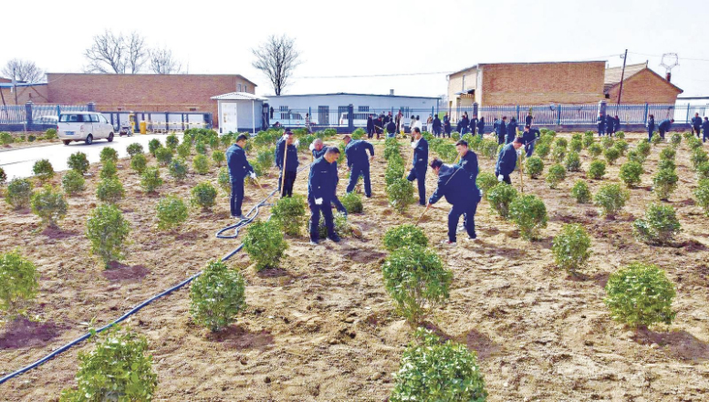 市供排水公司联合市林科所在西峰东区污水处理厂开展义务植树活动。 通讯员 毛娜娜 摄