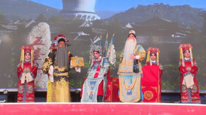 在永昌县北海子公园内,秦腔剧目《金沙滩》精彩上演。舞台上,戏曲演员唱腔铿锵,将角色的悲欢离合演绎得淋漓尽致。台下听戏的观众沉醉其中,每到精彩处,掌声此起彼伏。