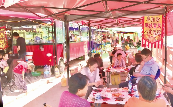 景区内,烧烤摊主李女士摊位前围满顾客。她一边手脚麻利地调制辣油,一边热情地招呼游客:“假期生意火爆,每天都能卖出上百份,烧烤食材补了好几次货!”不远处的露营基地同样人气爆棚,游客既能享受树荫下的清凉,又能品尝地道的临夏美食,纷纷感叹不虚此行。
