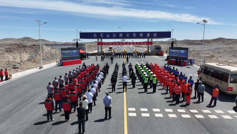 5月10日上午,G331线甘新省际通道通车活动在肃北县马鬃山镇红石山公路公安检查站举行。甘新两省(区)交通运输厅相关负责人在视频会场共同启动光影球,标志着G331线甘新省际通道正式通车。
