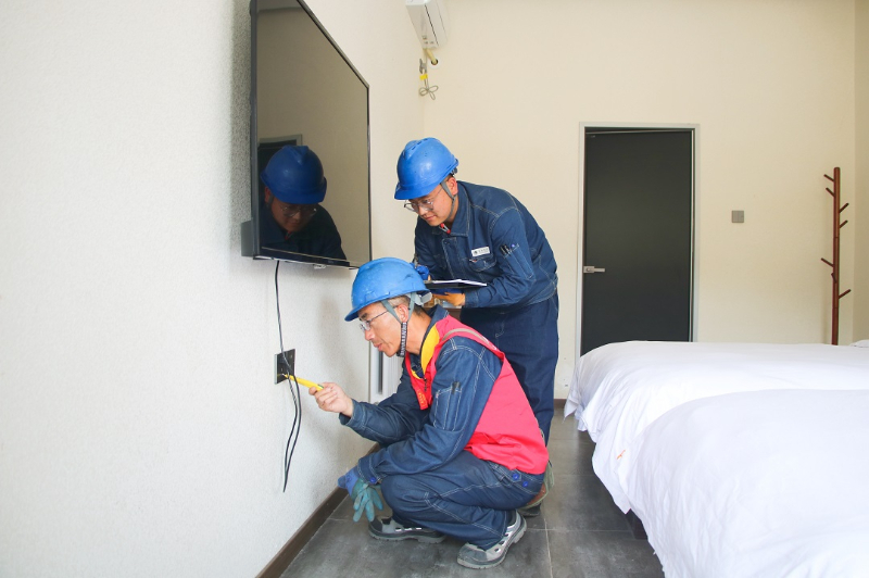 在民宿区,队员们逐户检查线路,为厨房加装漏电保护器,向游客发放安全用电手册。“小朋友,插头不能随便拔哦。”工作人员王亮蹲在亲子客房,用卡通贴纸教孩子安全用电知识。
