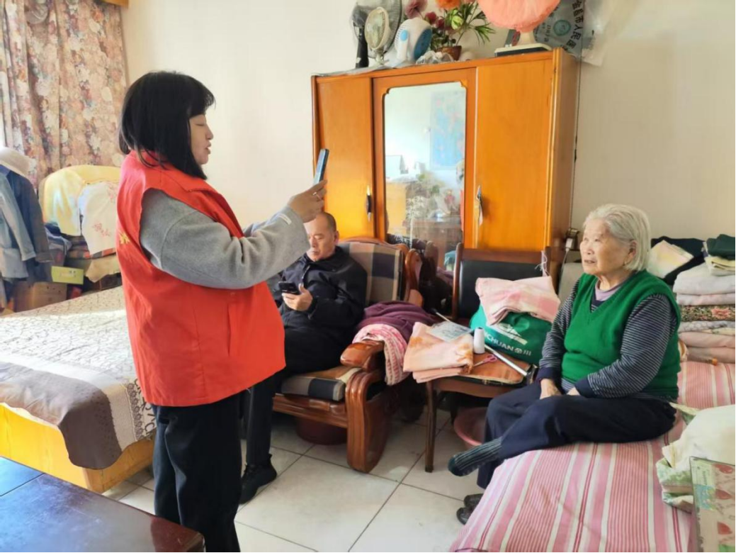 △桂林路街道宝星里社区便民服务站工作人员上门为高龄老人办理养老保险认证