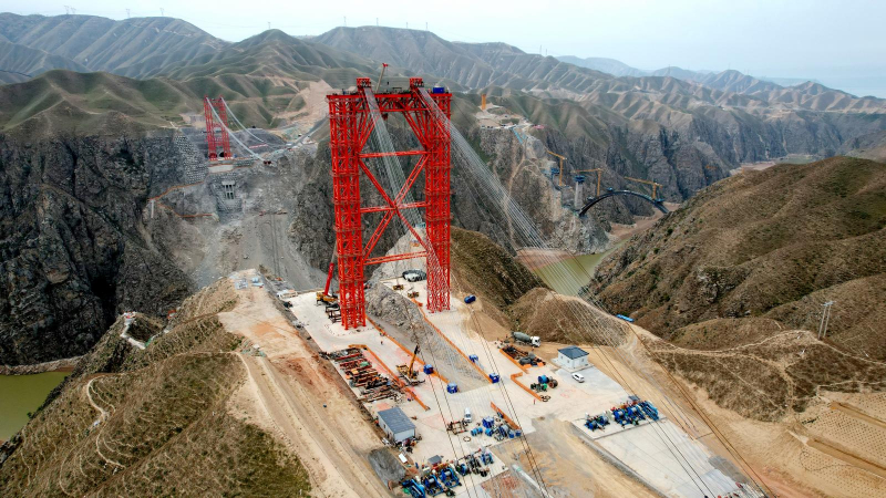 记者 王玮 奋楫扬帆正当时,各位观众,我现在所处的位置是永靖县三条岘乡境内的洮河特大桥项目的建设现场,作为兰永临高速公路控制性重点工程之一,该桥属于上承式钢管拱桥,由甘肃省公航旅集团和中铁二十局集团有限公司共同建设,截至目前已完成永靖端的拱座基础开挖,其余建设任务正在紧张进行。
