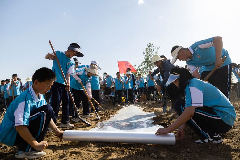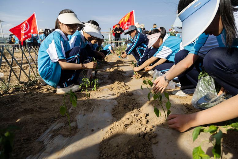 5月19日午后,骄阳似火,环城镇城东塬村的田野上却格外热闹。环城初中七、八年级两千余名师生迎着烈日,徒步登上城东塬,在“共享菜园”劳动实践基地开展了一场别开生面的研学活动。挥汗如土的翻地、热火朝天的播种、默契协作的覆膜……同学们用双手触摸土地的温度,在劳动中感悟“粒粒皆辛苦”的真谛。