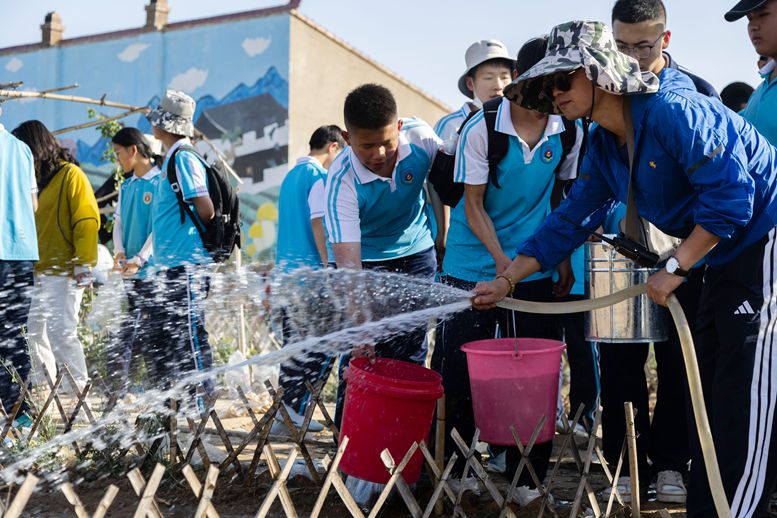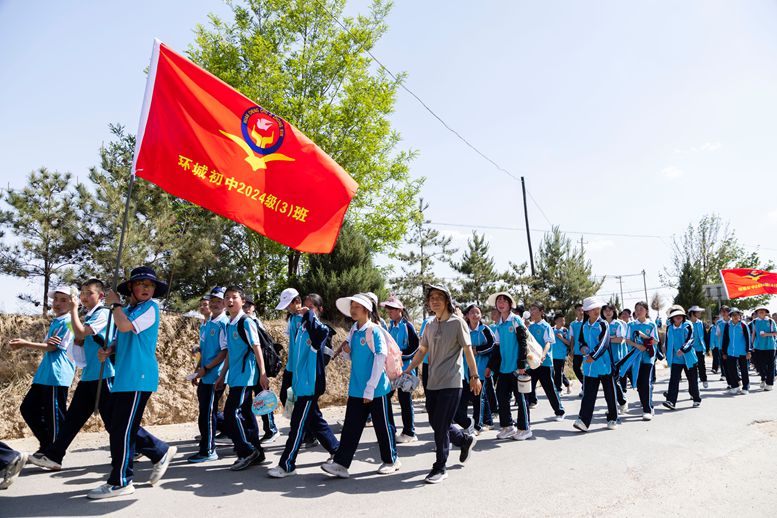 下午2:30,师生们从学校整队出发,沿着蜿蜒的山路向城东塬村行进。尽管烈日当头,汗水浸透了校服,但同学们互相鼓励,歌声与口号声回荡在山间。“坚持到底就是胜利!”带队的袁煜老师擦着汗笑道。半小时的徒步,不仅是对体能的考验,更让同学们懂得了“行远自迩”的踏实。