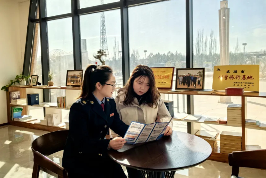 税务干部在凉州词体验馆前宣传辅导