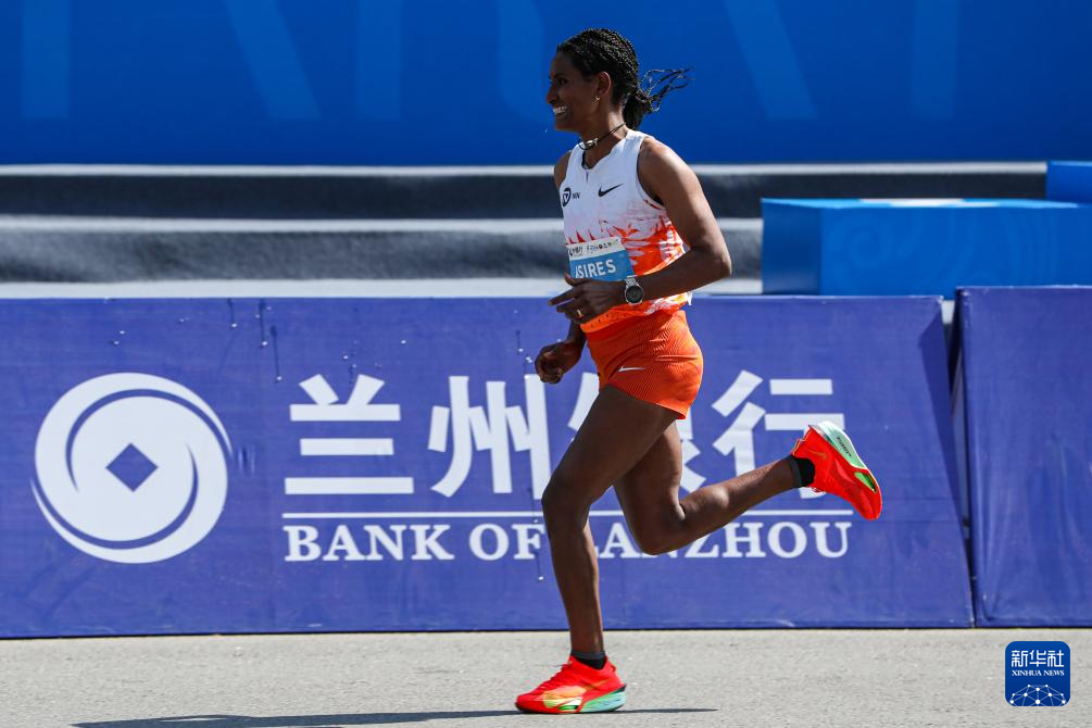 5月25日,埃塞俄比亚选手阿西雷斯在比赛中冲刺。新华社记者 郎兵兵 摄