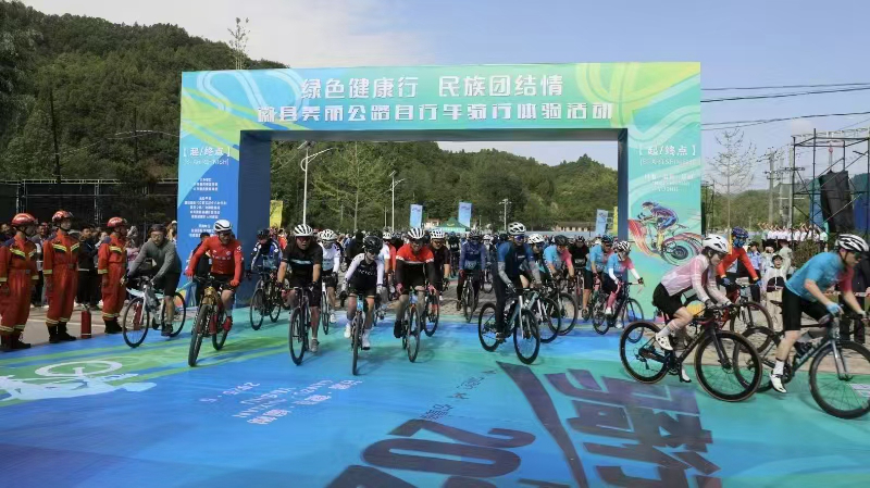 上午9时30分,随着一声发令枪响,参赛选手如离弦之箭冲出起点,浩浩荡荡的骑行队伍穿梭在青山与古道间。本次骑行活动全程约24公里,途经榆树古街AAA级景区,在感受徽县独特生态美景的同时,也能领略当地独特的茶马文化。