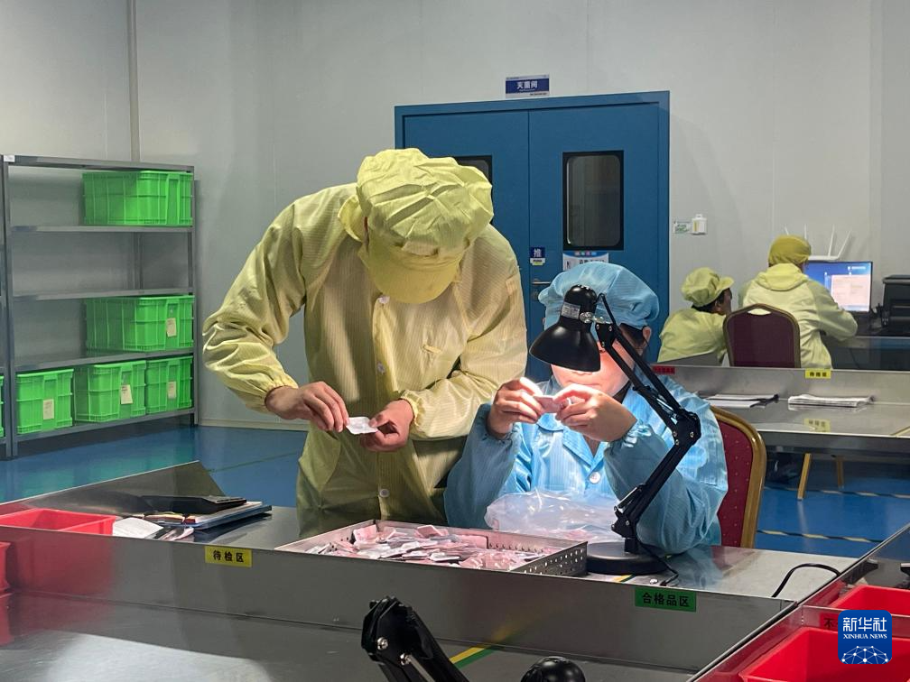 工作人员正在检查生产出的美瞳产品。 新华社记者 程楠 摄