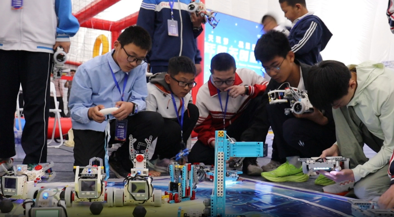 来自平凉市灵台县城关中学的代表队是现场为数不多的全女子参赛队伍。“初中加入科技班后,我才真正接触机器人和编程。”平凉市灵台县城关中学的张妍希分享道,“小学时,机器人对我来说充满神秘,现在它却带我走进了全新的世界,丰富了我的阅历。其实,成为宇航员,为祖国航天事业贡献力量,是我从幼儿园就有的梦想,这次比赛对我意义非凡。”