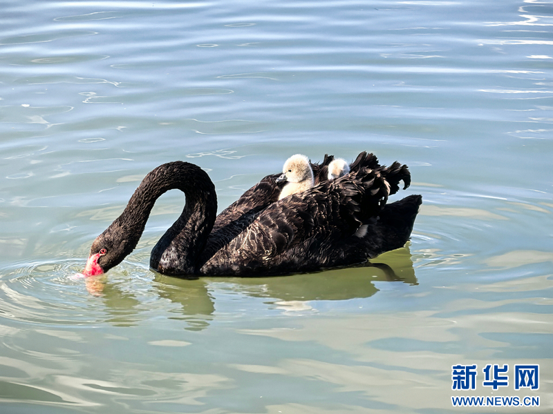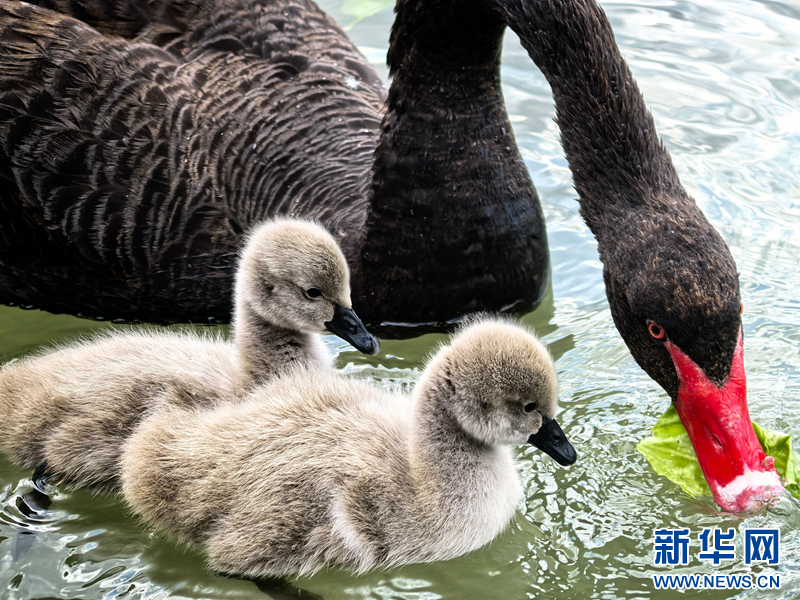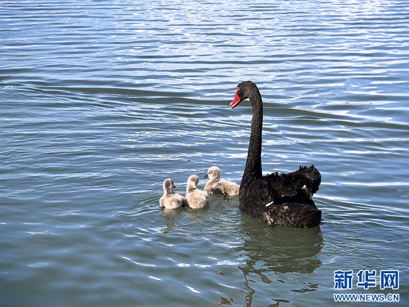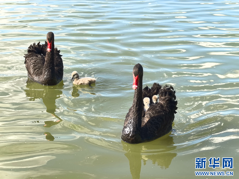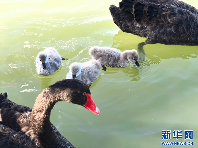 【大美甘肃】甘肃张掖:黑天鹅夏日晒“萌娃”-新华网