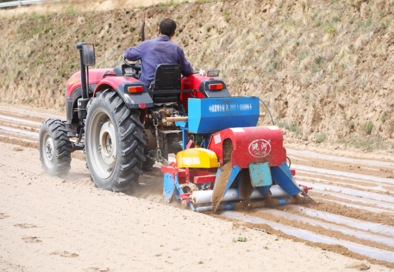 在芦家湾乡花儿掌村,村民刘广德叫来覆膜机,准备抢墒覆膜、抢种玉米。他高兴地说:“种子和薄膜我早早就备好了,就盼着这场降雨,现在终于可以把这十几亩地覆膜下种了。”在刘广德的田地里,覆膜机轰鸣着穿梭往来,一层层薄膜迅速覆盖在湿润的土地上,为即将播种的玉米提供了良好的生长环境。
