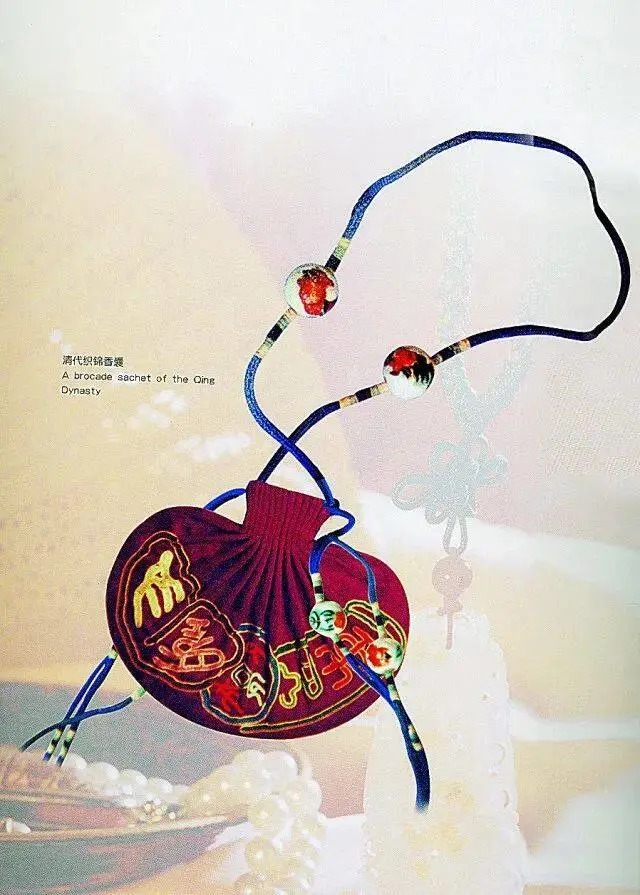 2001年,文物工作者在庆阳市华池县双塔寺塔体内发现了一个保存完好的金代香包。这个香包通体由黄褐色织锦绣制,呈椭圆形,玛瑙宝石带链,周边采用传统锁边工艺,底部有写意式的凤爪纹饰。主体为海棠花,用彩色丝线绣制而成。花叶造型从色彩到形态层次分明,富于变化,虽年代久远,仍艳丽如新。因双塔寺建造于金大定十年(1171年),距今近千年,故称“千岁香包”。“千岁香包”的出土,再次证明,香包在庆阳有着悠久的沿袭和广泛认同。