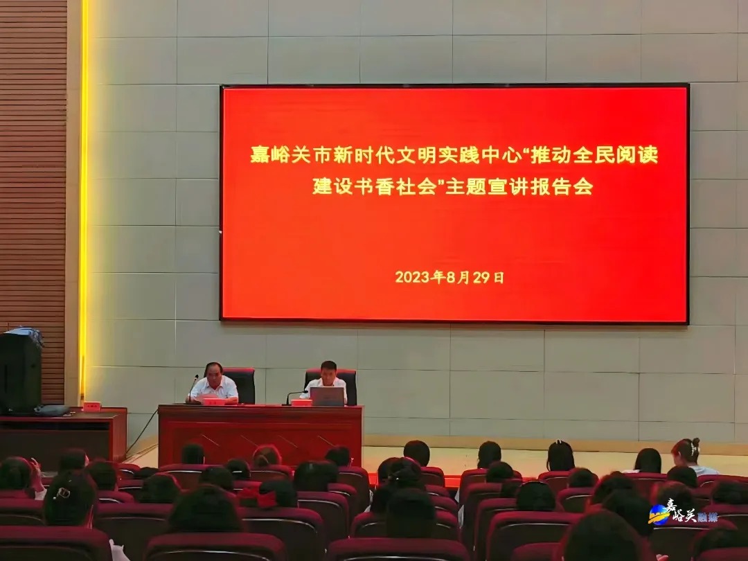 图为嘉峪关市新时代文明实践中心“推动全民阅读 建设书香社会”主题宣讲报告会。