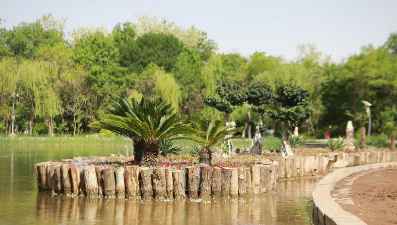 在金川公园,置身于水中的“映月花岛”微景观已成为该景区一道亮丽的风景线,它的设计初衷是进一步丰富水面景观,同时践行环保理念,园林设计师和绿化工作人员充分利用园林废弃物。以枯树干短截作为花池围挡,用落叶发酵形成的有机腐叶土作为栽培基质,打造出生态循环的景观系统。在植物选择上,则采用耐旱的非洲凤仙铺成绚丽花毯,并搭配铁树、剑麻等盆景,与亭台、湖景相映成趣,营造出自然与艺术融合的独特意境。此外,设计师特别注重后期维护的可持续性,通过低维护、免维护的设计理念,确保景观长期保持美观与生态平衡,为城市增添一处兼具观赏性与环保价值的绿色空间。