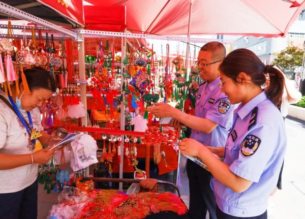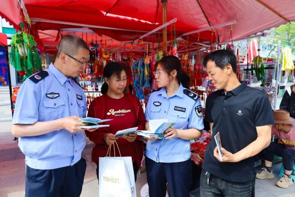 端午前的阳光热烈而灿烂,为街头巷尾的端午彩绳、精美荷包镀上一层金色光晕。五彩丝线编织的平安结随风轻晃,香气四溢的手工粽子摊位前人头攒动,处处洋溢着浓郁的节日氛围。普法小队的工作人员穿梭其中,以端午节的由来为切入点,将传统民俗与法治宣传巧妙融合。