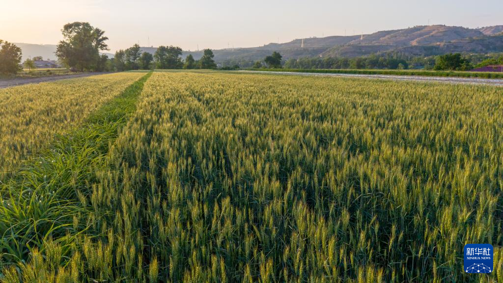这是5月28日在庆阳市镇原县开边镇兰沟村拍摄的一片灌区麦田(无人机照片)。新华社记者 郎兵兵 摄