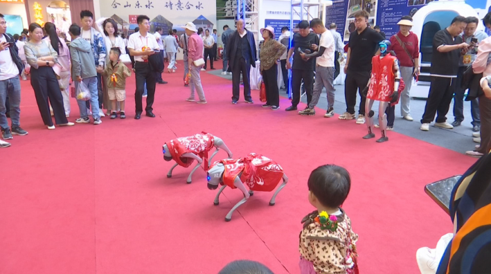 除了超模走秀,馆内的另一大亮点当属身着剪纸服饰的机器人。它们在人群中灵活穿梭,金属质感的身体与精美的剪纸服饰形成独特反差,科技感与传统艺术奇妙交融,引得来往行人纷纷驻足观看,不少小朋友更是被机器人吸引,好奇地围在旁边,探索传统与科技碰撞的魅力。