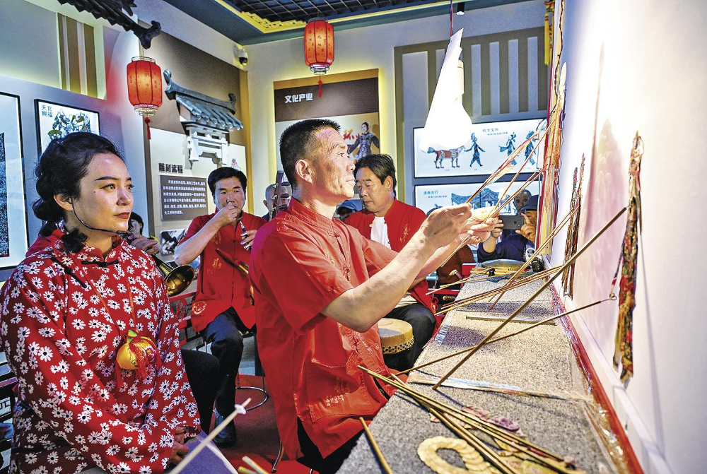 环县馆内的皮影表演。 庆阳融媒记者 陈飞 摄