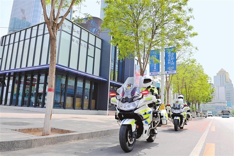 骑警在东方红广场综合警务站前整装待发。兰州市公安局供图