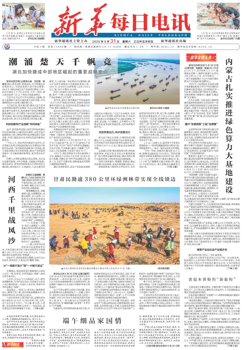 初夏时节,河西走廊草木葳蕤,处处可见全民治沙、科技治沙、产业治沙的“酣战”场景。