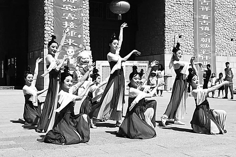 丹霞口文旅小镇大剧场内,一场穿越时空的对话悄然上演。大型历史情景剧《回道张掖》舞台剧以丝路重镇张掖历史文化为载体,将霍去病西征、隋炀帝西巡、万国博览会等元素搬上舞台,让观众切身感受古丝绸之路的辉煌。福建游客朱善灵观看完演出感慨道:“沙子撒下来的时候很壮观,看完节目我感受到浓厚的历史背景,这个端午来这真是不虚此行。”
