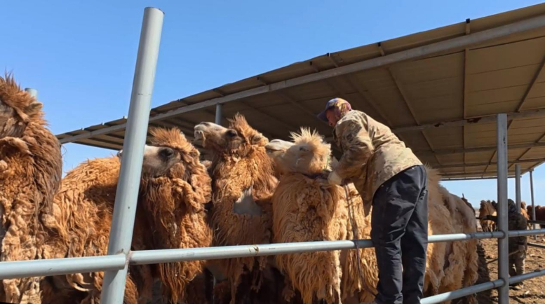 “我们家有160余峰骆驼,驼绒大概能卖1万多,这个收入还是很可观的。”肃北县党城湾镇马场村村民西尼扣说。