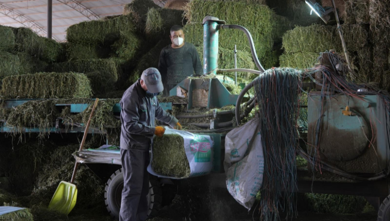 近日,记者走进甘肃杨柳青牧草饲料开发有限公司的包装车间,工人们正熟练地将优质苜蓿打包成捆,一袋袋印有“丝路花雨”品牌标志的牧草产品即将发往全国各地。仓储区内,成摞的苜蓿草捆整齐码放,散发着清新草香。