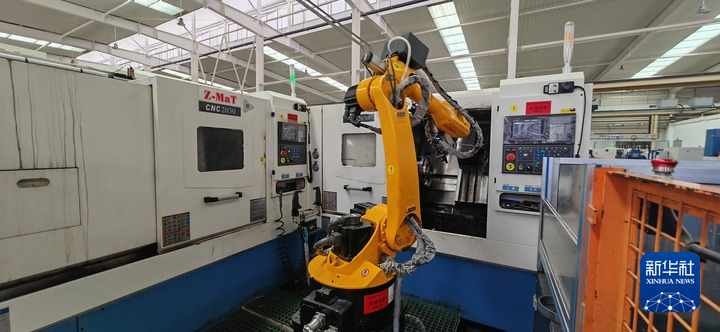 甘肃海林中科厂区内,机械臂正在工作。新华社记者 文静 摄