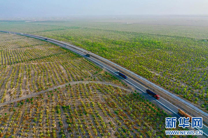 金塔县环城防护林网(资料图)。