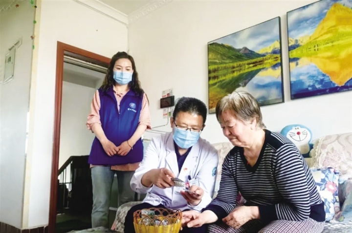 新城区社区卫生服务中心家庭医生指导患者用药。