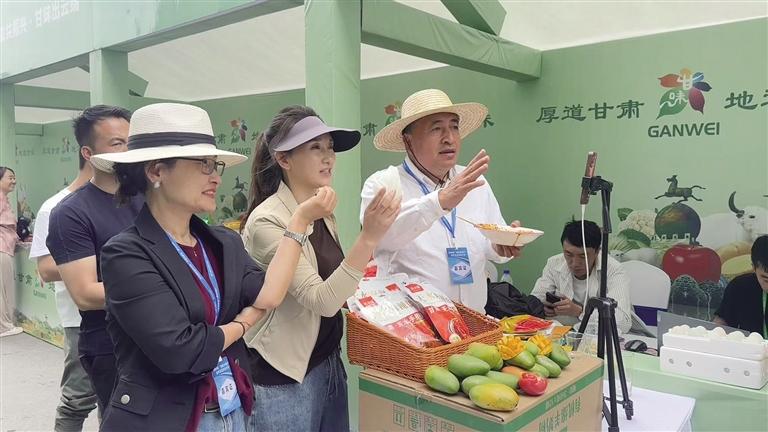 新鲜脆甜的百合、口感劲道的牛肉、酸甜可口的苹果,走进活动现场,各参展企业纷纷亮出“拳头产品”,不少展位还准备了美食饮品供宾客品尝。活动现场设立的直播带货区成为一大亮点,以“津陇共振兴·甘味出云端”为主题,邀请9组网络达人开展为期两天的直播带货,同时天津“津云”和“益元臻选”两家头部直播销售公司同步进行直播,通过线上线下联动,拓宽销售渠道。