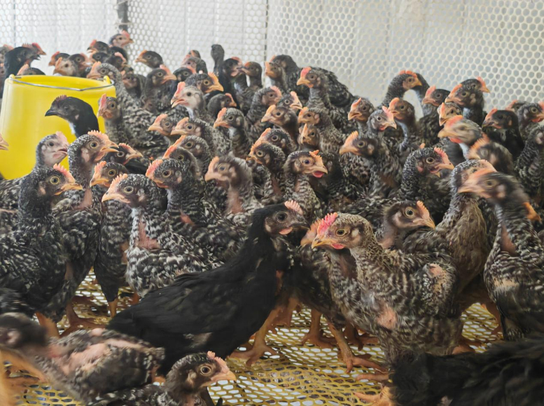 六墩镇副镇长杨波说道:“曾经的六墩镇,畜禽养殖散、小、乱,农户‘单打独斗’难成气候。近年来我们镇党委瞄准生态优势,盯上‘会飞的芦花鸡’——耐粗饲、肉质鲜、市场俏的本土品种,开启‘破圈’之路。通过‘向上争资+集体筹资’,建成芦花鸡育雏场1处,生态千只散养基地3处,芦花鸡产销中心1处,形成‘集中育雏+千家万户散养’的全流程体系。党员干部带头试养,64户养殖能手组成‘头雁方阵’,带动全镇及周边乡镇800余户群众养殖,芦花鸡养殖规模从2020年的1.2万羽跃升至今年的8万羽,六墩芦花鸡成了周边县市商超的‘抢手货’。”