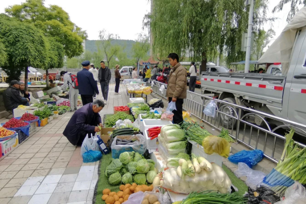 康乐的早市,先于第一缕朝阳唤醒小城。走进文化广场早市,人声鼎沸,颇为热闹。人们将自家菜园、大棚里成熟的新鲜蔬果、进购的各种货物,在各自的摊位摆放整齐,供居民挑选。