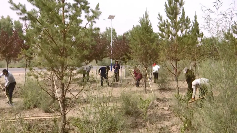 自然资源局林业和草原事务中心护林员王志成说:“我们主要是绿色通道这一片区,每年三月份开始对绿色通道进行15-20天一次的浇水,还有绿色通道的巡护、森林防火、病虫害防治工作,这些工作我们要持续到11月底。每年四月份,各林带都有补栽树木,这两天我们刚把水浇完,在没来水之前要先除草、维修管子、挖渠、打窝,为下一次的浇水作业提供便利。”