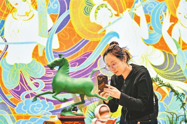 金城关景区的一家文创店内,以铜奔马为原型的文创产品吸引游人目光。