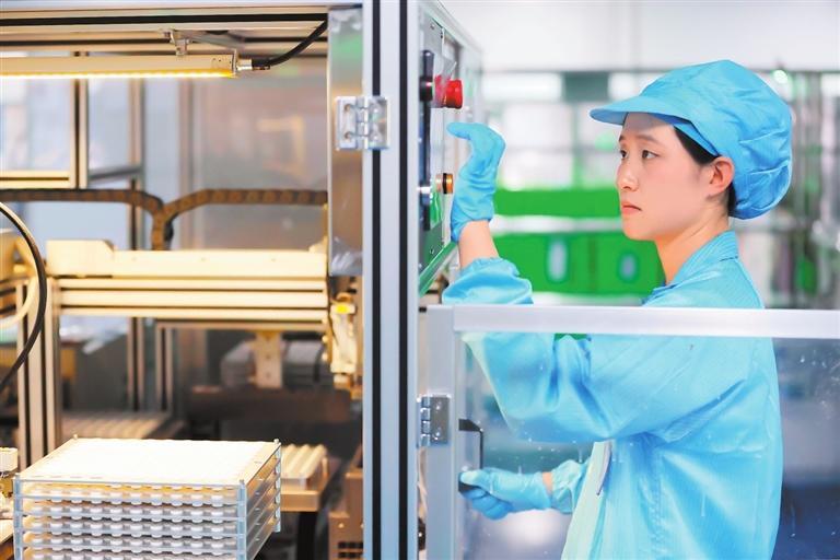 甘肃康视丽隐形眼镜有限公司生产基地,工人在操作精密设备。新甘肃·甘肃日报记者 高樯