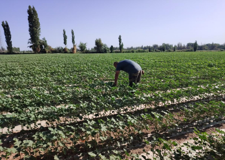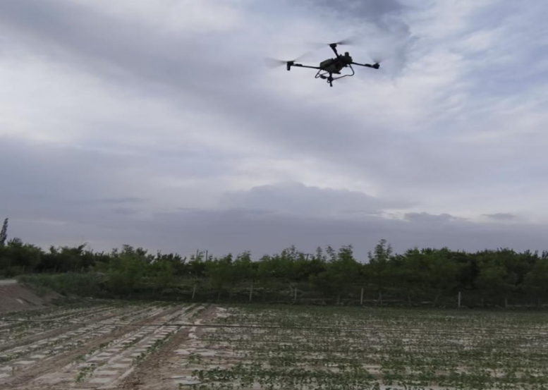 在敦煌市黄渠镇闸坝梁村高标准农田里,一株株嫩绿的棉苗成行显绿,棉农抓住棉花田间管理关键时期,为棉田除草、打药,一派繁忙景象。过去,需要耗费五六天时间才能完成棉田的打药工作,如今,在无人机的助力下,仅需短短一两天即可完成。