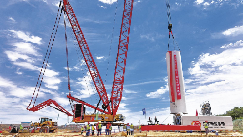 图为华池县50万千瓦新能源项目首台风机吊装现场。 庆阳融媒记者 陈思 摄