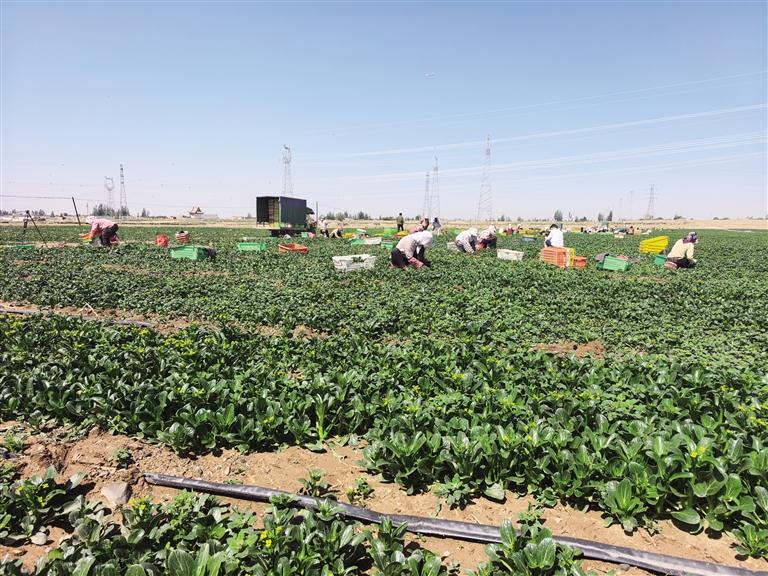 日前,记者走进兰州新区上川镇砂梁敦村菜心种植基地,连片的广东菜心正值采收期,工人们穿梭在田间,熟练地收割菜心,呈现出一片繁忙的丰收景象。据悉,这些首茬菜心在经过质检、称重、整齐装箱等程序后,将在48小时内直达粤港澳大湾区市场。