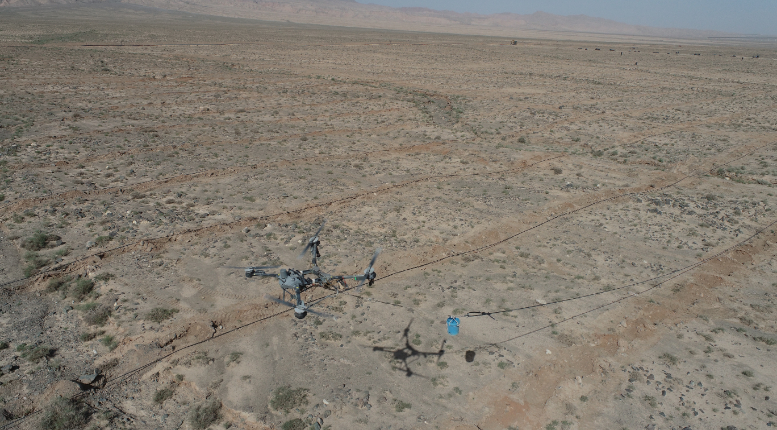 肃北县林业草原中心在三北六期工程林草湿荒一体化保护修复项目中,突破传统施工瓶颈,首次引入无人机调运技术完成管网25管道铺设。仅耗时两天,完成了总面积约3500亩的项目区域25管道铺设任务,较传统人工铺设方式所需的7天工期缩短了71%,创造了同类项目施工效率的新纪录。