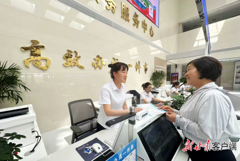 金塔县政务服务中心窗口工作人员热情服务办事群众。新甘肃·甘肃日报通讯员 卢玉 摄