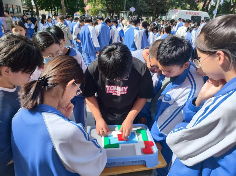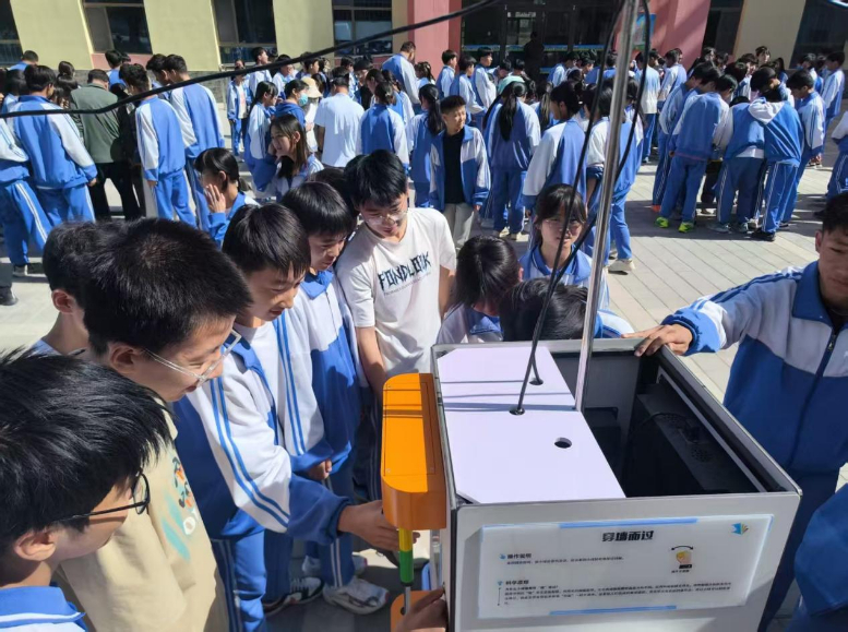 现场,21件超炫科技作品一字排开,像打开了“潘多拉的科学魔盒”,3套共15件科普资源包同步亮相,为同学们带来了一场知识盛宴。6套24件互动展品更是“藏着大招”,双曲狭缝、磁力转盘这些“高冷”的科学概念,在师生们的亲手操作中变得“接地气”,不少同学边玩边惊叹:“原来课本上的知识还能这么玩!”