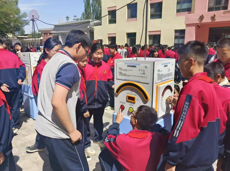 玉门市科协的工作人员化身为“百科全书”,现场开启趣味问答模式。同学们踊跃举手,你一言我一语,在欢乐的互动中,把科学知识牢牢“刻”进了脑袋里。