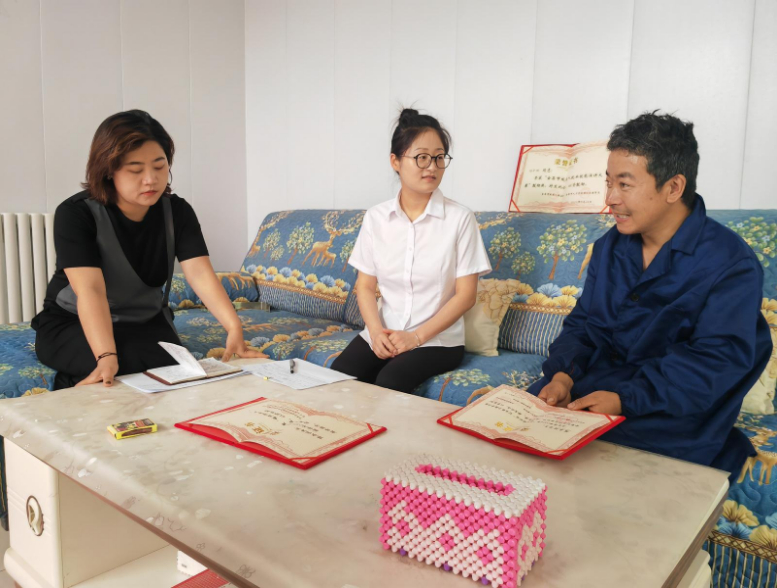 金川区就业服务中心工作人员入户走访,了解陈永润的经营情况
